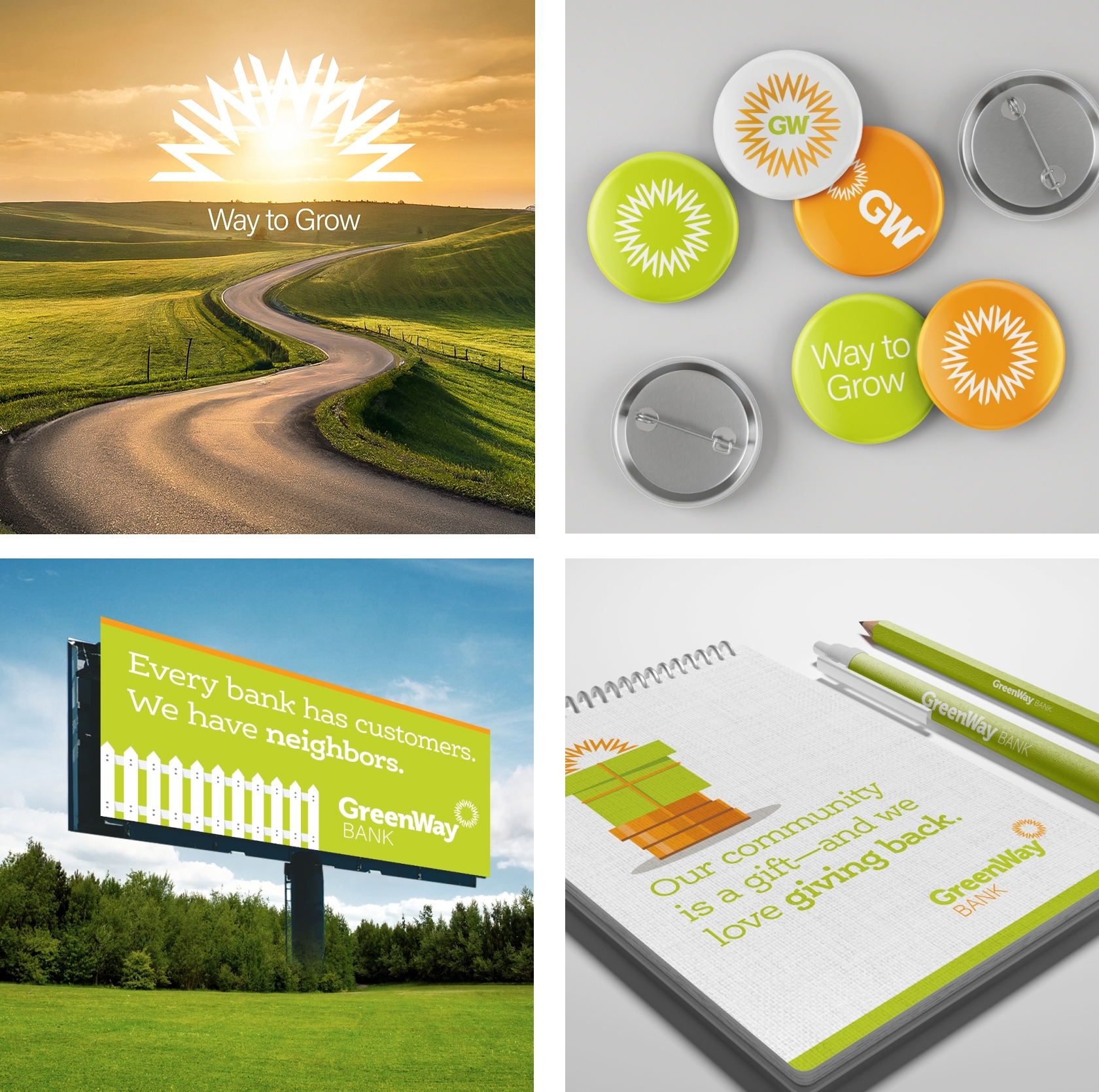 After extensive brainstorming and collaboration, we gave the bank a growth-oriented name, GreenWay Bank, and a matching tagline, “Way to Grow.” We also delivered in-depth messaging and an updated logo and visuals. To modernize the brand’s traditional look and capture its future-focused approach, we provided brighter shades that updated their existing palette. Additionally, we evolved their star-shaped avatar to honor their history while looking ahead. Now, GreenWay Bank’s brand reflects both its successful past and its promising future.